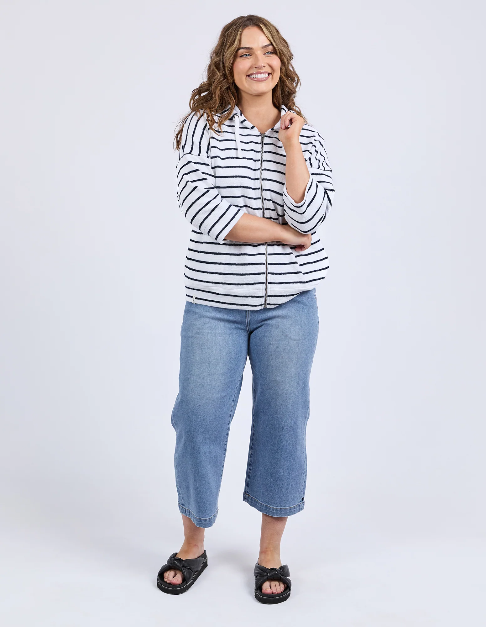 Designed for everyday wear, the beachy hoodie - stripe boasts zip opening and a hood, yarn dye stripe, and pockets. Style it your way for an effortless look that works for any day of the week.