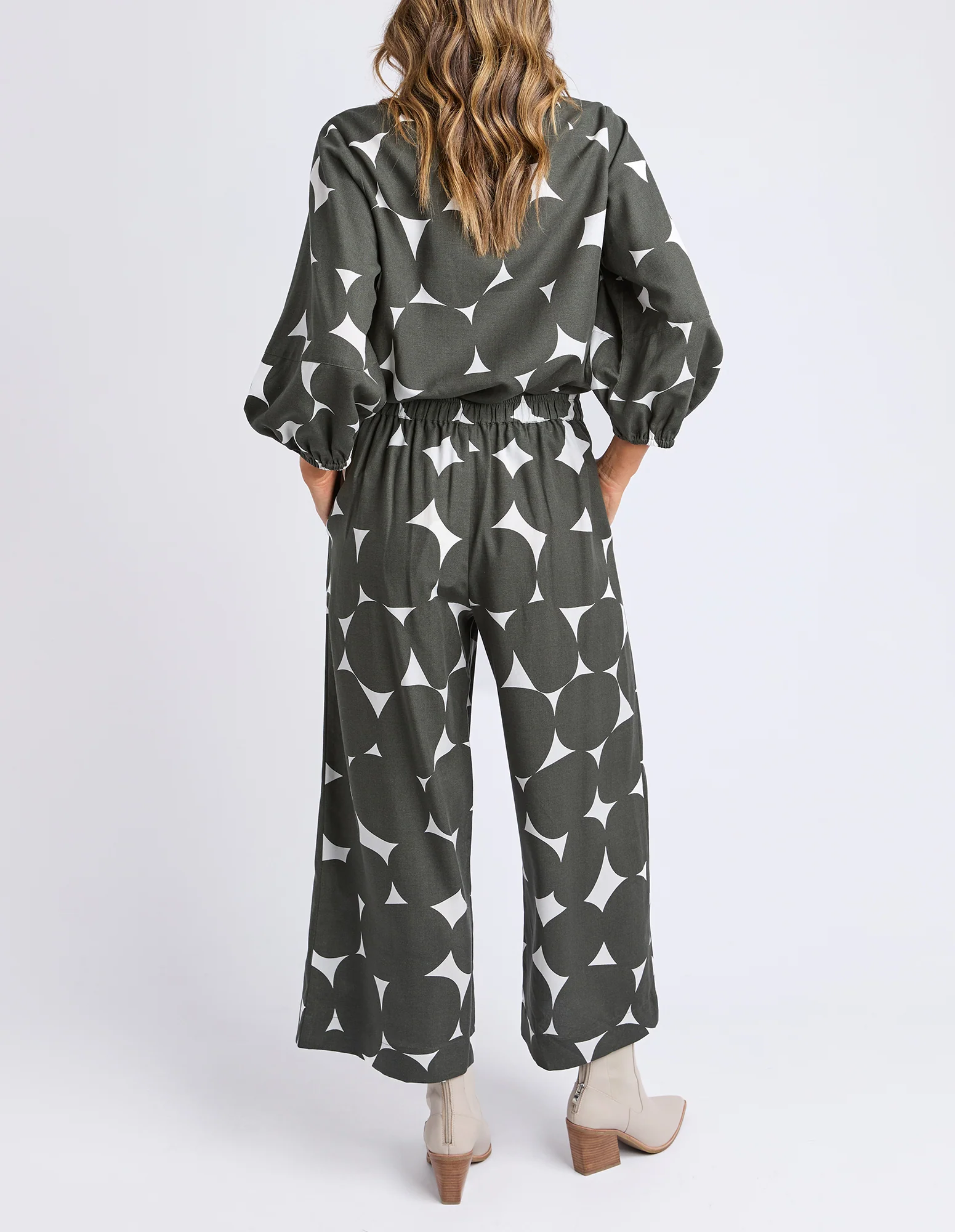 Featuring a bold spot print exclusive to Elm, the Demi Spot Pant is sure to elevate your outfit for an effortless and relaxed look.